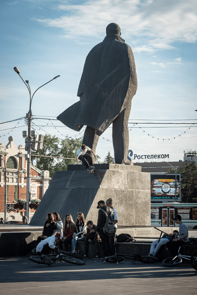 Памятники Ленину давно стали неофициальными местами встреч скейтеров — здесь катаются, учат трюки, тусуются. В каждом городе это точка сбора для молодёжи.